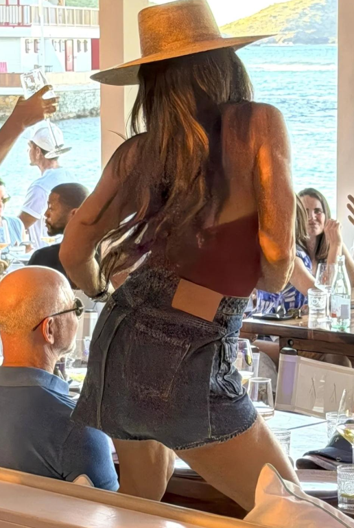 本日的桑切斯天然不是主角,但打扮的减龄又显嫩;她上身穿酒红色抹胸衣,下身配蓝色牛仔短裙,看上去清凉又有活力感,少量儿也不像是年过半百的女东谈主。