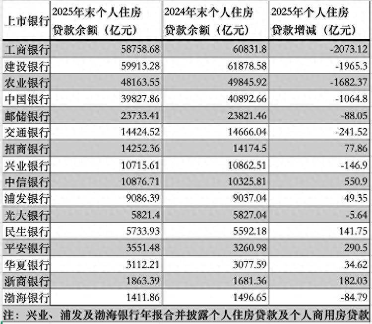 10家股份制银行中,7家在2025年个东谈主住房贷款余额增长,兴业银行、光大银行和渤海银行个东谈主住房贷款余额下跌。