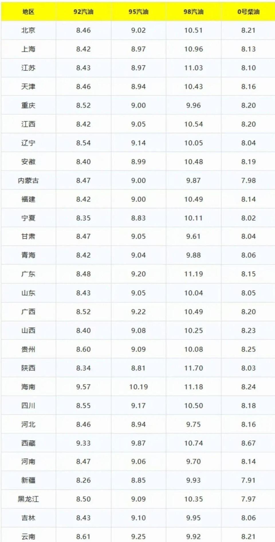 宇宙各地的加油站照旧在今天凌晨更新了价钱牌。 字据多个油价信息平台汇总的数据,调价后宇宙92号汽油的平均价钱回落至每升8.45元傍边,95号汽油平均价钱降至每升9.03元傍边,0号柴油平均价钱则在每升8.12元傍边。 以北京地区为例,92号汽油价钱为8.46元/升,95号汽油为9.01元/升。 广东地区的95号汽油价钱从高位回落至9.18元/升。 海南省的油价天然仍为宇宙最高,但95号汽油也从10元区间跌回了9.57元/升。 这次下调让之前因为联结上升而屡改造高的油价,出现了一个显著的回调缺口。